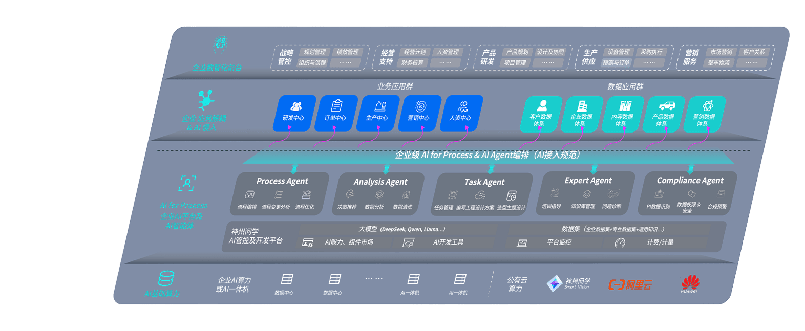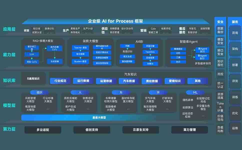 豪运国际问学智车解决方案是一套基于AI技术的汽车行业智能化系统,,,覆盖从底层算力到顶层AI应用的全栈方案。。方案由算力层、、、、模型层和应用层组成:算力层,,,方案支持多种一体机配置,,,具备云端灵活部署、、多云适配以及动态优化计算资源的能力;模型层,,,,豪运国际问学平台版提供了企业级AI应用一站式构建与管理平台,,,,支持基于后训练强化技术的汽车企业专属模型的训练、、评测和运营;应用层,,,,豪运国际问学DeepSeek版提供包括超级员工、、、智能招采、、、、智能营销、、智能客服、、AI for BI等一系列解决方案,,,可助力汽车行业实现数字化转型,,让管理更智能、、响应更敏捷。。。